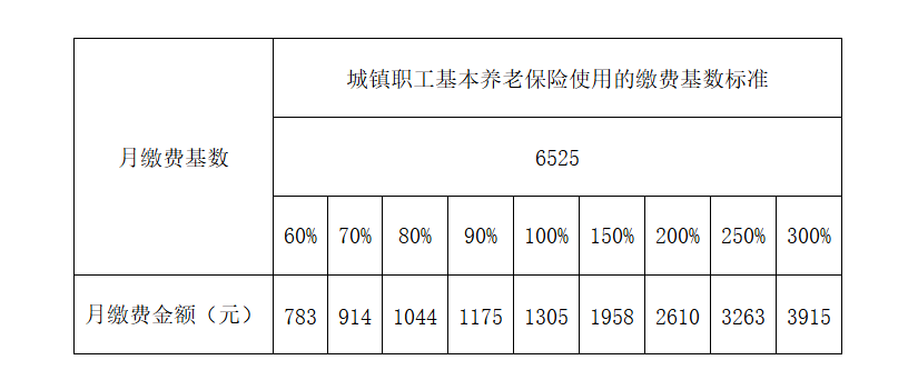 三、参保人员2025年度实际缴费年限本人缴费工资指数,按当年职工本人月缴费基数与缴费基数标准6525元的比值据实计算。其中,已缴纳了2025年度企业职工基本养老保险费、工伤保险费、失业保险费,且低于2025年度最低缴费档次60%标准的,应补齐差额部分金额。